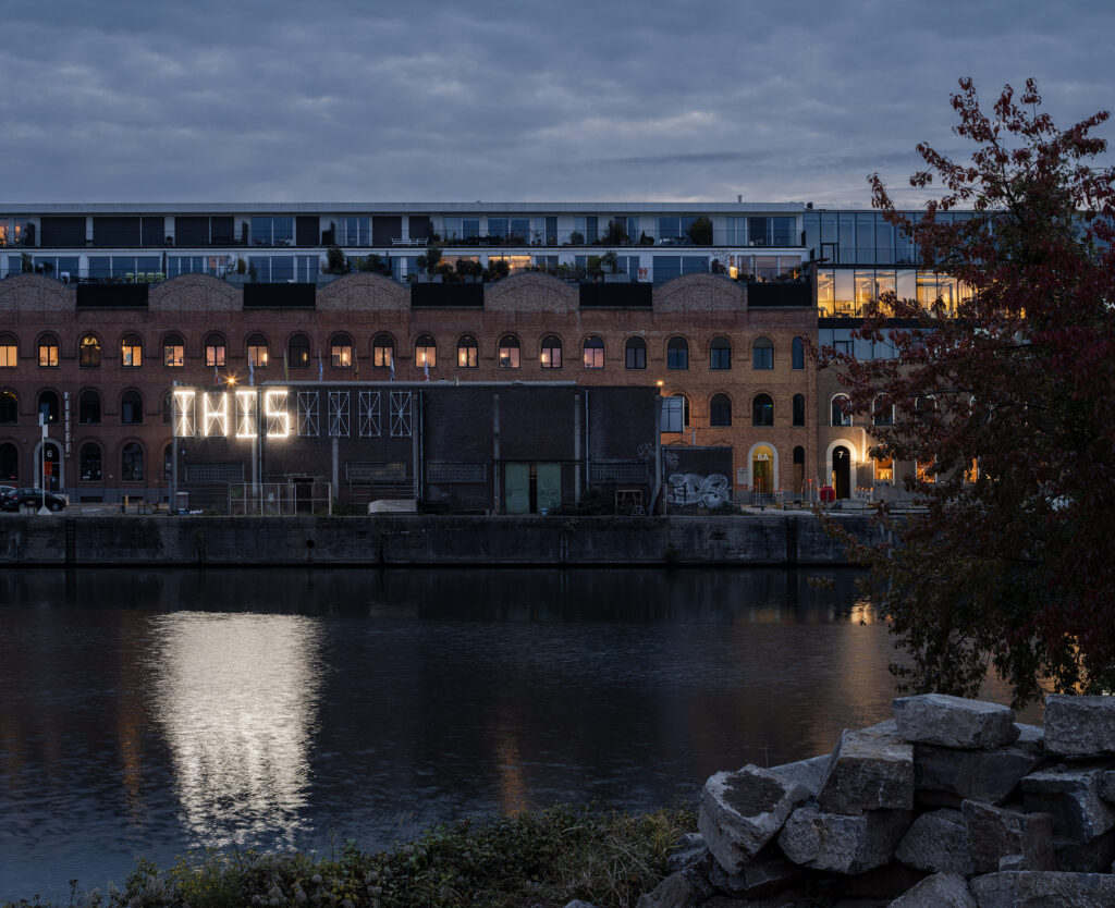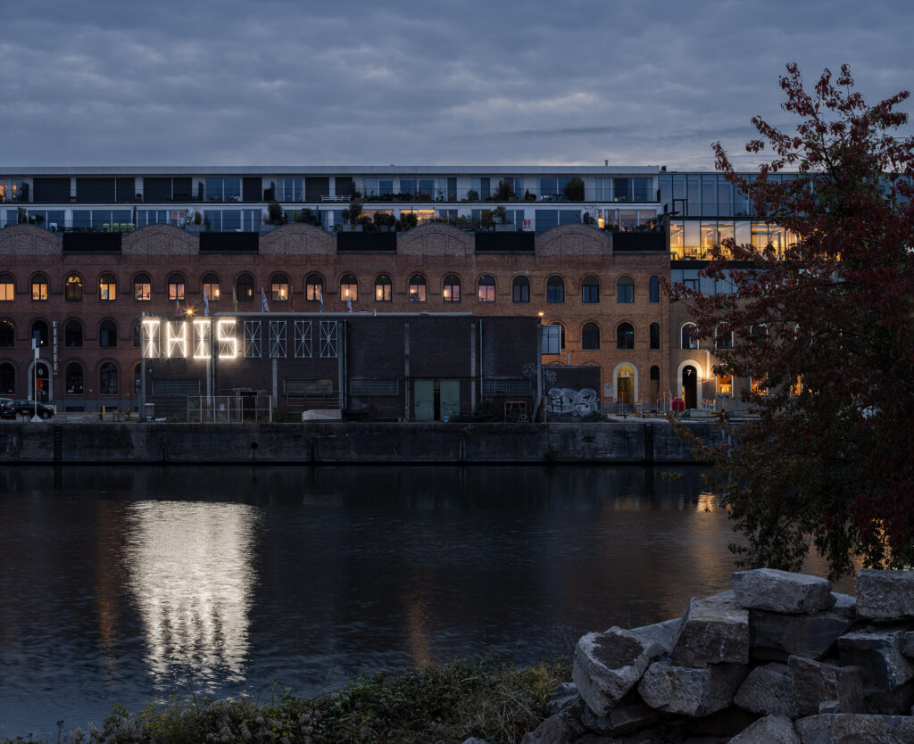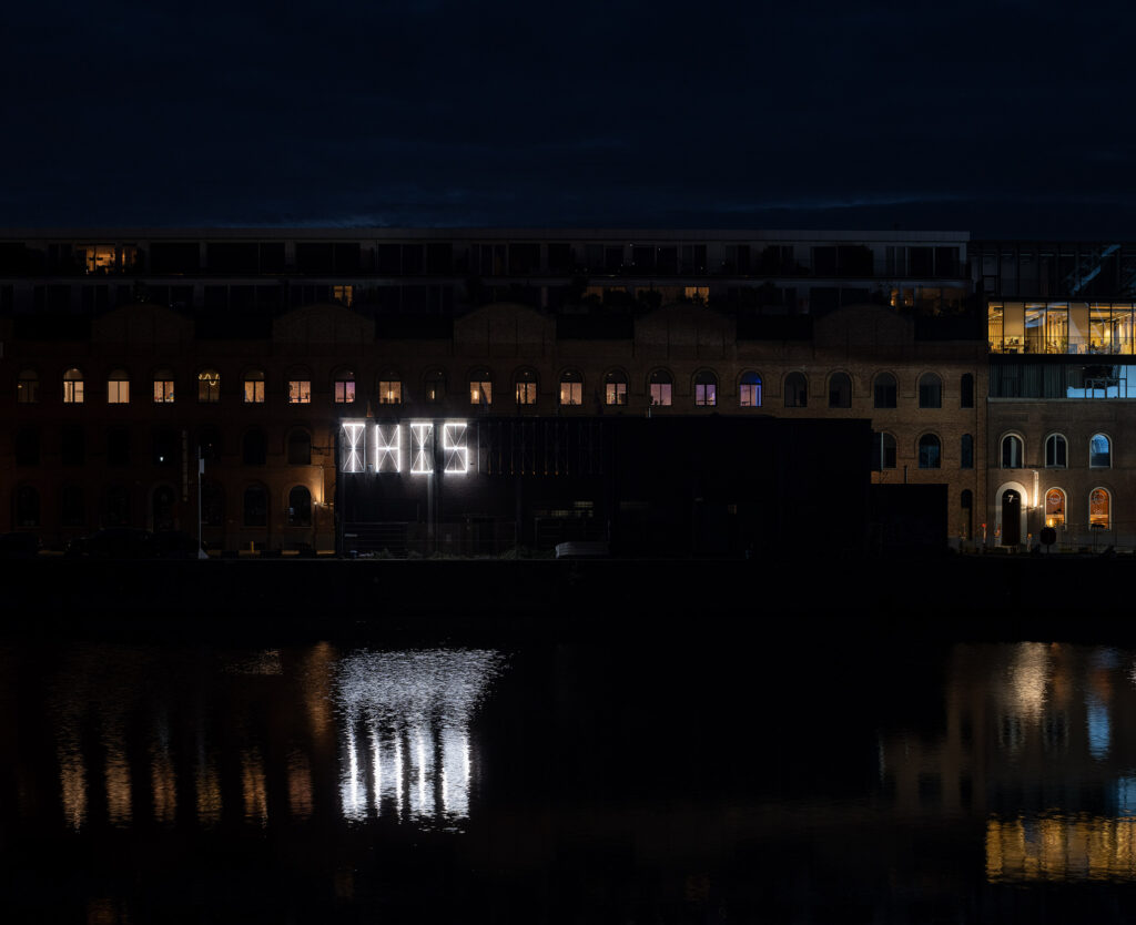 THIS TOO SHALL PASS is te zien van 2 oktober tot en met 16 november 2025, elke avond van zonsondergang tot 22.00 uur, op ‘Neighbor’, de lichtconstructie aan de oostgevel van 019. Het werk is het best te zien vanaf de overkant van het dok (Schipperskaai).